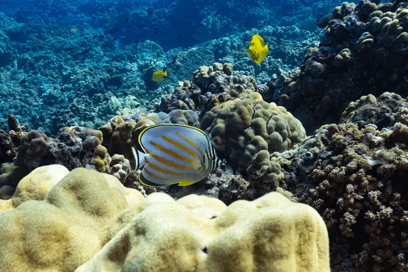 Under the surface, you may spot schools of tropical fish cruising along the reef and possibly Hawaiian green sea turtles (honu) gliding through the coral corridors. Conditions vary by day, so your captain may choose the best nearby reef for safety and visibility.